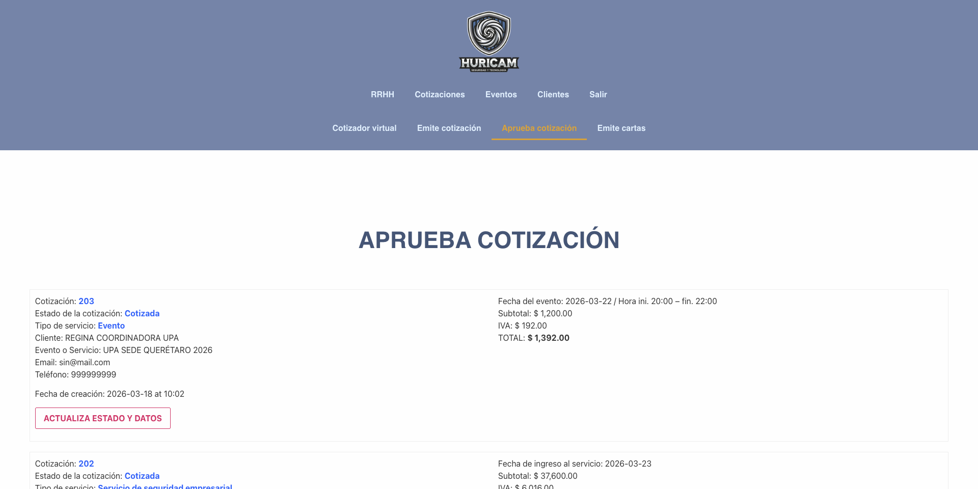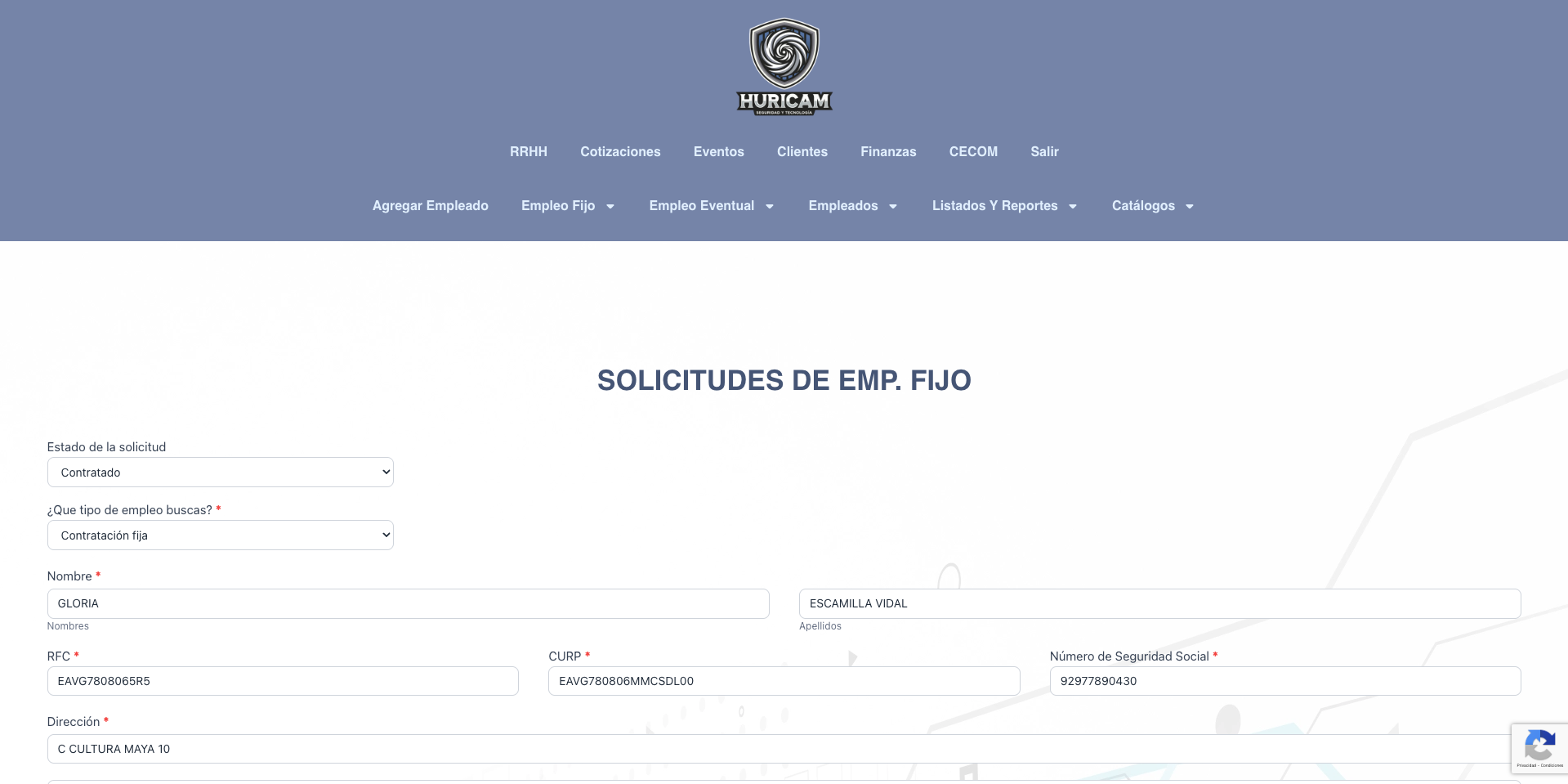El equipo de HURICAM contrataba y reemplazaba personal de seguridad constantemente — porque así es ese negocio. El problema es que todo vivía en hojas de cálculo, correos y carpetas que nadie encontraba. Nómina a mano, cotizaciones a mano, seguimiento de candidatos a mano. Mucho “a mano” para una empresa que opera las 24 horas.